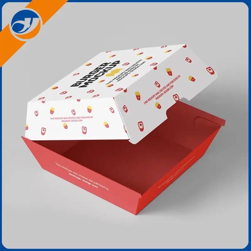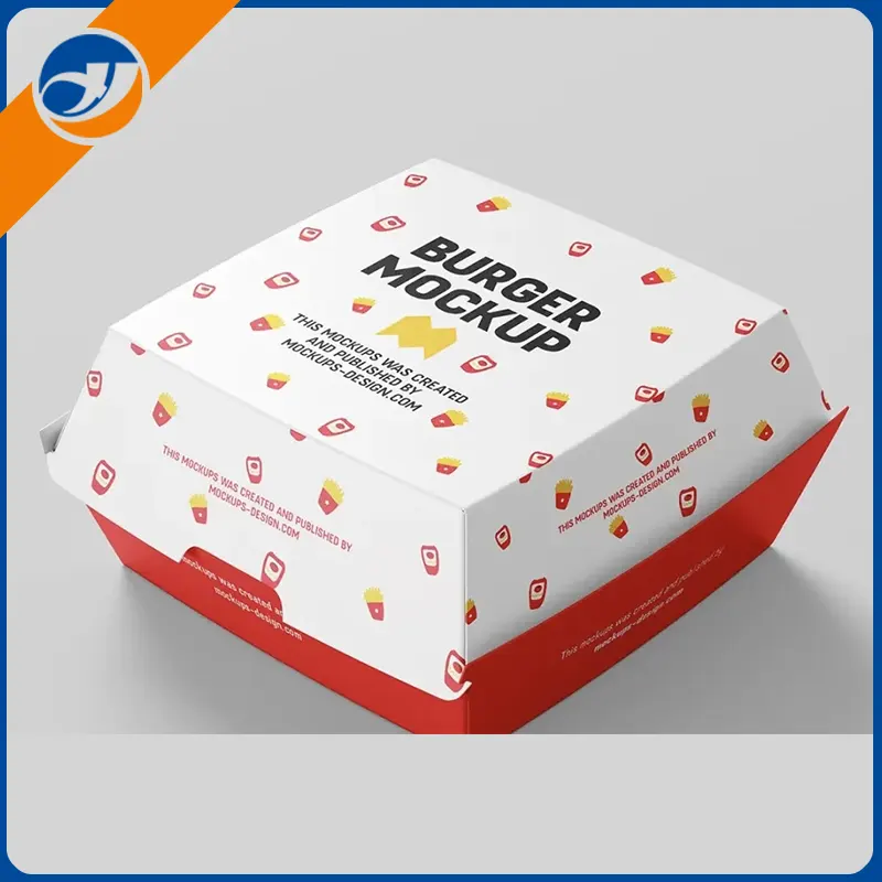 Renkli hamburger kutusuRenk psikolojisi yoluyla iştahı teşvik ederken ve yemek deneyimini geliştirirken, logo ve sloganlar gibi marka öğelerinin tasarıma tasarıma entegrasyonunu destekler.