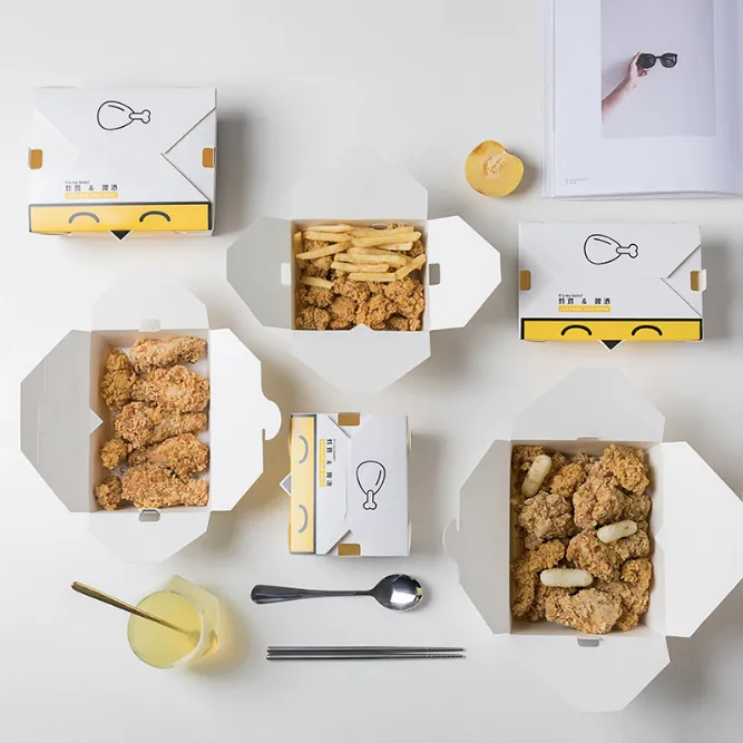 Kızarmış tavuk kutusu, fast food endüstrisi için özel olarak tasarlanmış bir tür kızarmış tavuk kağıt ambalaj kabıdır. Kızarmış tavuk kutusu, yüksek sıcaklıklara ve yağlara dayanıklı, su geçirmez ve sızdırmaz, sıcak ve soğuğa uygun, paketlenmesi kolay gıda sınıfı kartondan yapılmıştır. Kızartılmış tavuğun tazeliğini ve sıcaklığını etkili bir şekilde koruyabilen, iyi sızdırmazlık ve izolasyona sahip pratik bir kızarmış tavuk kutusudur. Zemeijia fabrikası tarafından üretilen kızarmış tavuk kutusu, özelleştirilmiş baskıyı destekliyor ve paket servis, catering ve parti sahneleri için uygun.
