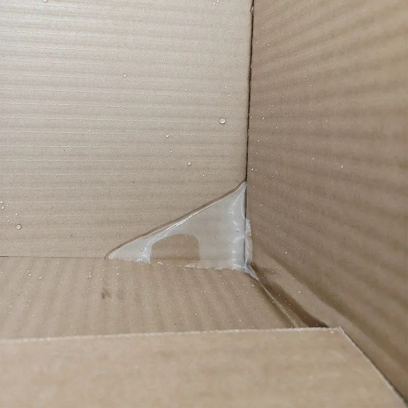 ● Mutfakta depolama, yağmurlu günlerde taşıma, suyla karşılaşılabilecek taze ürün devri gibi senaryolar için kutunun dış yüzeyi tamamen gıdaya uygun şeffaf mum film ile kaplanmıştır. Kazara dökülen soya sosu veya su bir bezle kolayca silinebilir ve balmumu filmi soyulmaz veya nemin kağıt katmanlarına sızmasına izin vererek kutunun yumuşamasına neden olmaz. Kısa süreli hafif yağmur sıçramalarında bile su izi kalmayacak ve kutunun sertliği değişmeyecektir.