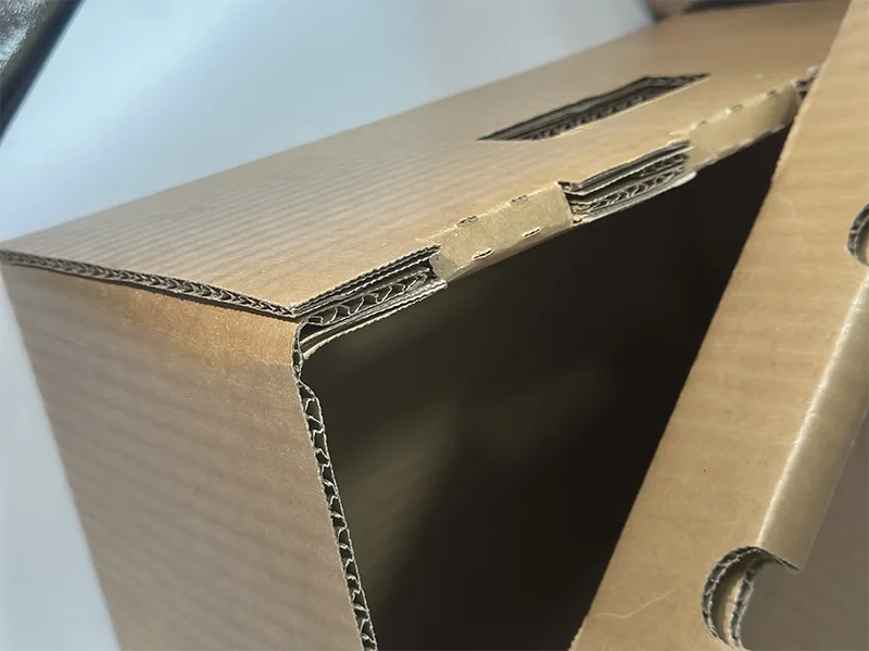 Büyük su geçirmez oluklu mukavva kutuların su geçirmezlik özellikleri her zaman sabit yük taşıma kapasitesi sağlar. Geleneksel büyük karton kutular nemli ortamlarda (%70 -%90 nem) nem emmeye ve yumuşamaya eğilimlidir ve yük taşıma kapasiteleri 24 saat içinde %50'den fazla düşebilir. Su geçirmez oluklu mukavva kutular ise nem girişini engellemek için kompozit PE film kullanır. Bir ay boyunca nemli bir ortamda depolansa bile, yük taşıma zayıflaması hala %8'den azdır, bu da nemin neden olduğu yük taşıma arızasını önler ve uzun mesafeli taşıma ve büyük ürünlerin uzun süreli depolanmasının yük taşıma ihtiyaçlarını karşılar.