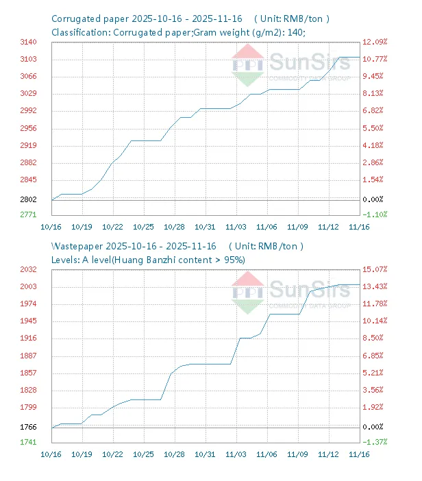 Trend, artan atık kağıt fiyatlarından kaynaklanıyor. %95'in üzerinde saflığa sahip olan ve oluklu kağıdın temel hammaddesi olan A-seviye Huang Banzhi atık kağıdı, 16 Ekim ile 16 Kasım arasında %15,07 arttı. Bu durum, üzerindeki yukarı yönlü maliyet baskısını artırdı.oluklu kağıttedarik.